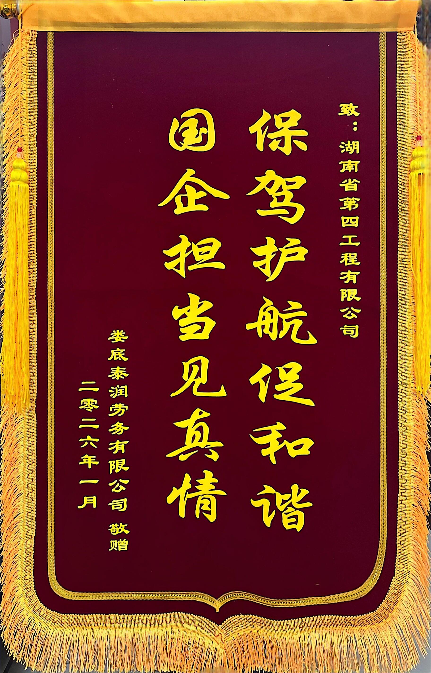 永州讯(通讯员 雷祺琪)“感谢湖南四建实实在在为我们工人着想,这下终于能安心带着工资回家过年了!”日前,公司收到江永中国智慧城项目劳务工人们送来的锦旗和感谢信,真挚致谢公司及公司党群综合部、永州分公司等相关工作人员主动担当,高效破解工资结算难题、保障大家安心返乡。